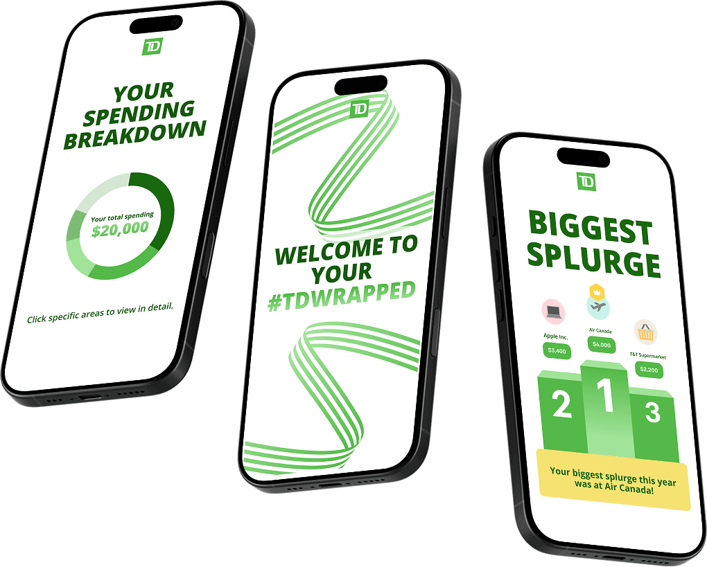 TDWrapped is a project that provides personalized banking insights in a fun and engaging way, inspired by Spotify Wrapped. It helps TD Bank customers visualize their annual spending, saving, and financial habits through data-driven storytelling. The project transforms complex financial data into digestible, shareable insights, making money management more accessible and enjoyable.